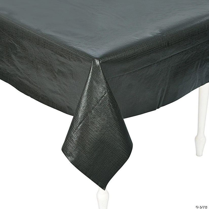 Tablecloths are essential party supplies, and this black table cover is a discreetly elegant way to dress up your wedding decorations or your New Year’s Eve party! Sprinkle it with gold or silver glitter to add some pizazz to your event. This black tablecloth with flannel back is also perfect for graduation parties, formal dinners, proms and more. Keep your celebration spill- and mess-free with this durable chic party decoration.โข Vinyl.โขย 54″ x 108″