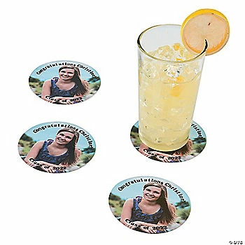 Searching for a unique way to feature your guest of honor? Try putting a favorite digital photo on these one-time use coasters and hand one out with every drink! These coasters make a marvelous way to celebrate or show support during a variety of occasions and events. Personalize with two lines of text, plus upload your own digital photo or image. Uncoated, absorbent coaster paper. (50 pcs. per unit) 3 1/2″ diam. ยฉ OTC