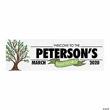 Get ready for the annual get-together or a brand new tradition of family reunions with this personalized banner! Hang it up as a personalized decoration for instant photo ops to commemorate the occasion. Includes adhesive tabs for hanging. Personalize with 3 lines of text. Vinyl. 72″ x 23″ © OTC