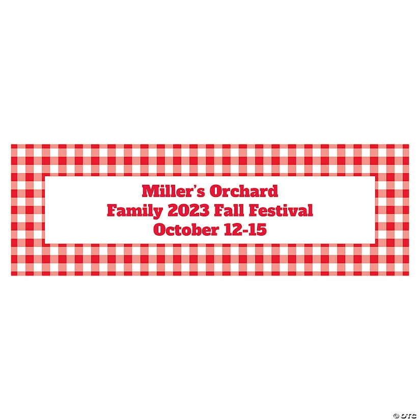 Welcome guests in style with this eye-catching banner featuring personalized text and an attractive red gingham border design. Great for outdoor festivals, BBQs, picnics, informal wedding receptions, family reunions or any other gathering with a bit of a rustic feel, this banner will help guests feel welcome and let them know to expect a relaxed event. Vinyl. Personalize with 3 lines of text. © OTC