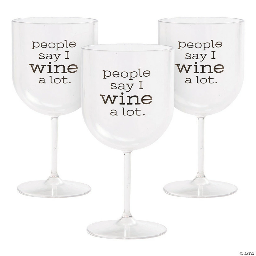 No one will whine about these funny glasses! Printed with “People say I wine a lot,” they’re sure to get people laughing at your next event. Use these glasses for entertaining and dinner parties – just place a glass at each place setting. If you’re hosting a wine-themed party or event, give the wine glasses to guests as prizes or favors! Plastic. 6 1/2″ 8 oz. © OTC