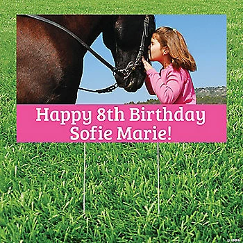 This versatile yard sign is a fun way to draw attention to your home or party space! Whether it’s a birthday party, prom, celebration or any event, this custom yard sign is the perfect outdoor decoration! Personalize with 2 lines of text. Upload your own photo. Single-sided. Includes metal stakes. Corrugated plastic. 46″ x 28″ Simple assembly required. © OTC