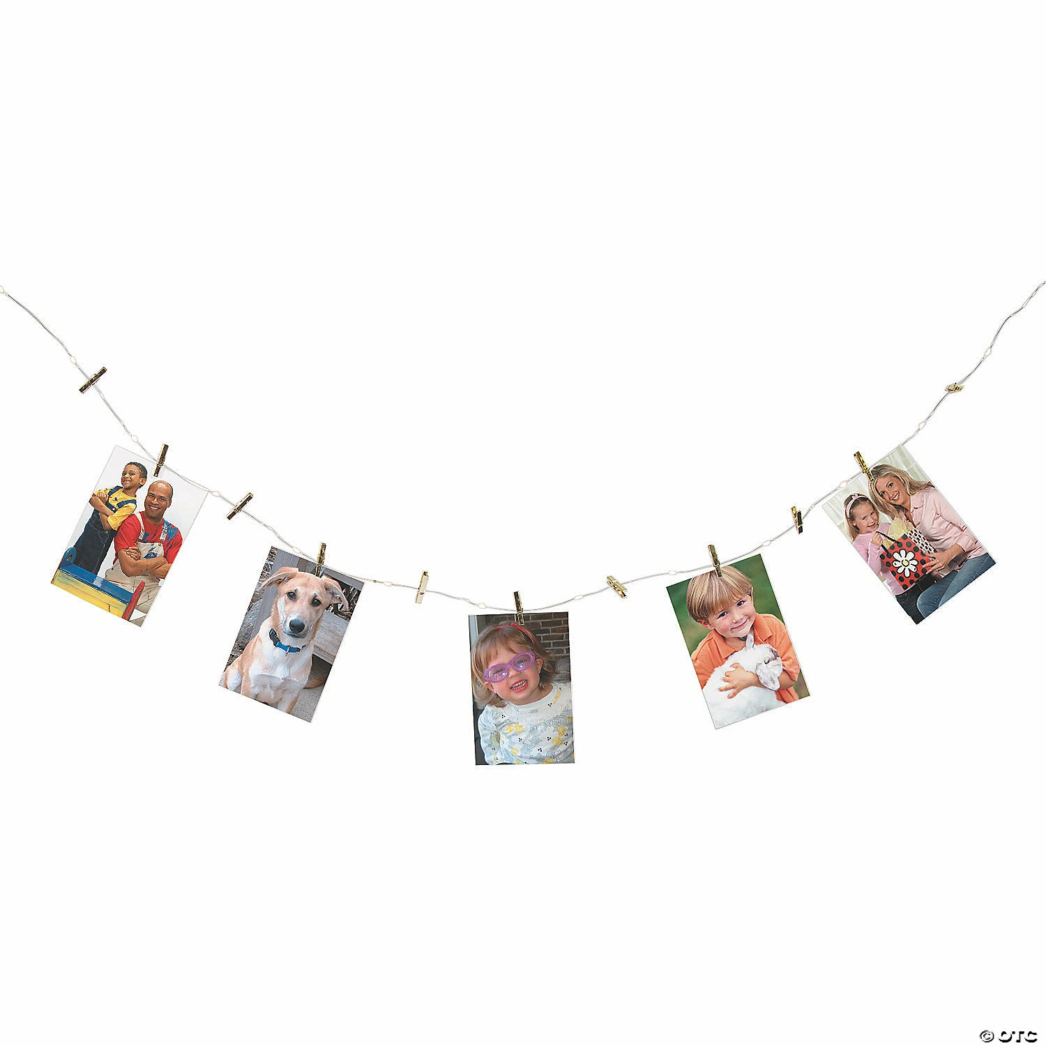 Add even more magic to your memories by stringing them together with delicate little fairy lights. This slim string of white lights has a dozen gold clips for photographs, making it a memorable addition to wedding centerpieces, the guest book table, or the cake table. Itโs also an elegant way to capture and display memories at a golden anniversary party, milestone birthday or graduation. Plastic. 8 ft. Requires 2 “AA” batteries, not included.