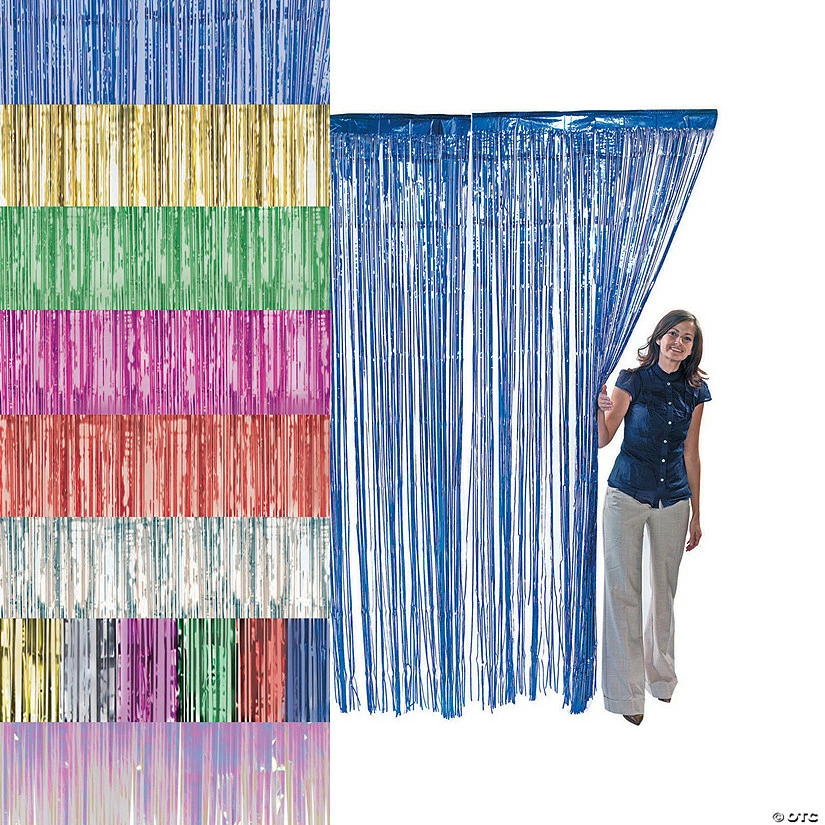 Give your event some extra pizazz with this metallic fringe curtain! Foil fringe curtains make perfect party decorations as backdrops for DIY photo booths. They’re ideal for decorating doors and windows, too! Choose the shade that matches your celebration’s color scheme and let all your party guests make a grand entrance thanks to this dazzling party accessory! 3 ft. x 8 ft.