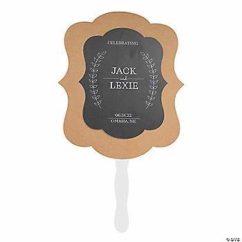 With a chic black and white design over a kraft paper border, these custom wedding favors are a wonderful addition to wedding supplies! Add the details of your big day and then set them out at your reception or ceremony for guests to grab. Personalize with 5 lines of text. Cardstock. 6″ x 7 1/2″ on an 8″ plastic stick. Simple assembly required. ยฉ OTC