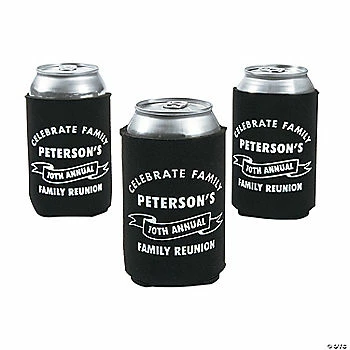 Provide a high-quality keepsake from your family reunion with these premium can coolers! Whether it’s your annual reunion or the first one you’ve had, there’s always a reason to commemorate the occasion! Find more ways to add a personal touch to your family reunion supplies throughout the site! Personalize with 3 lines of text. Fits a 12-oz. soda can. Neoprene Rubber. (2 dozen per unit) 4″ ยฉ OTC