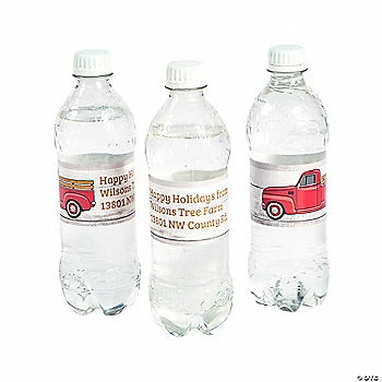 Transform any disposable 20-oz. water bottle into an impressive party favor or client giveaway with these attractive water bottle labels. Featuring a shiplap background design and the image of a red, vintage truck, these labels also have personalized text, making them perfect as party favors or beverage station supplies for a rustic party. Vinyl. (50 pcs. per unit) 9″ x 2″ Personalize with 3 lines of text. © OTC