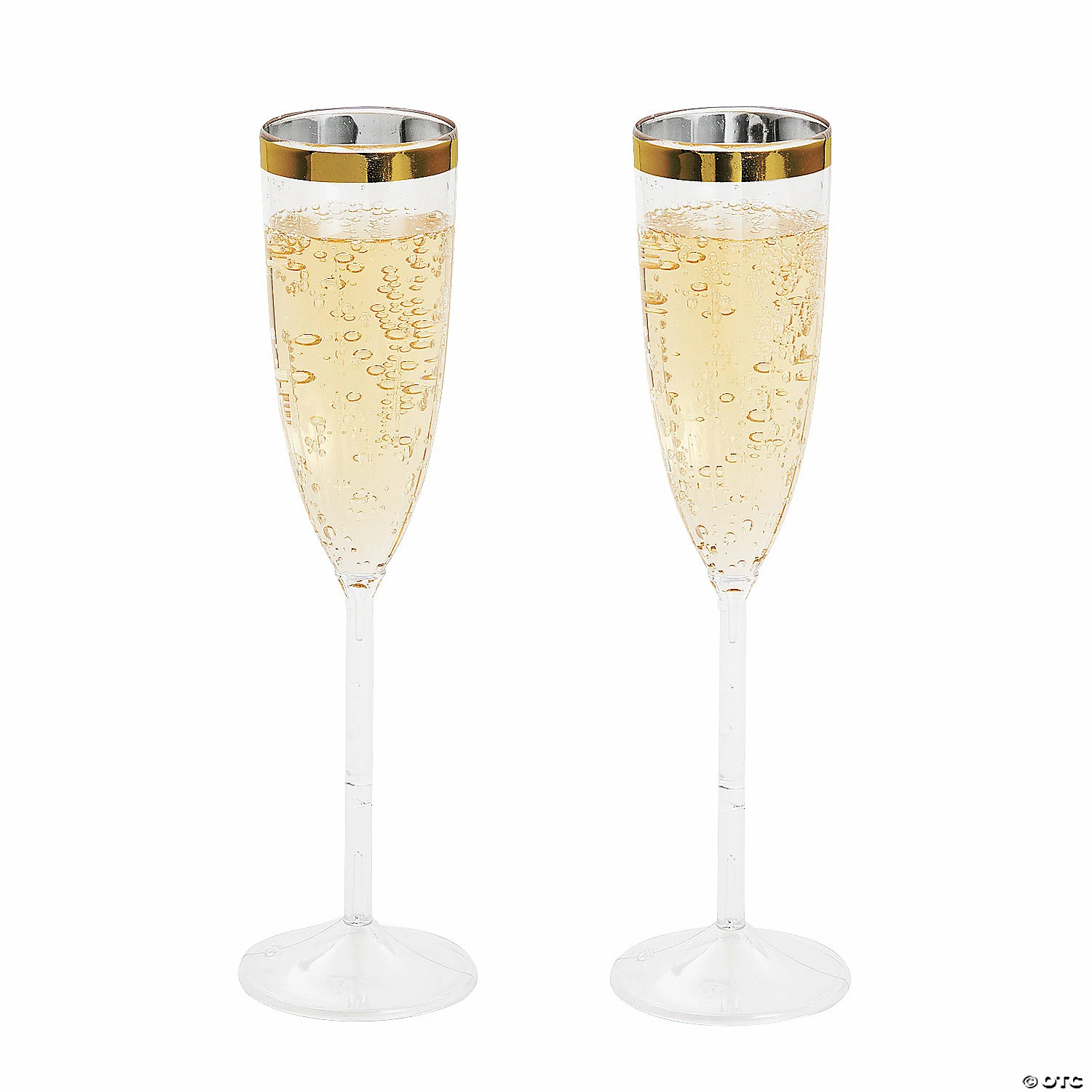 These lovely champagne flutes combine the elegance of gold trim with the convenience of disposable plastic. The perfect addition to toasts at any formal affair, these flutes are a good addition to bar supplies for a wedding reception, New Year’s Eve celebration or any other gathering in which bubbly will be served. Plastic. 9″ 4 oz. Hand wash only.