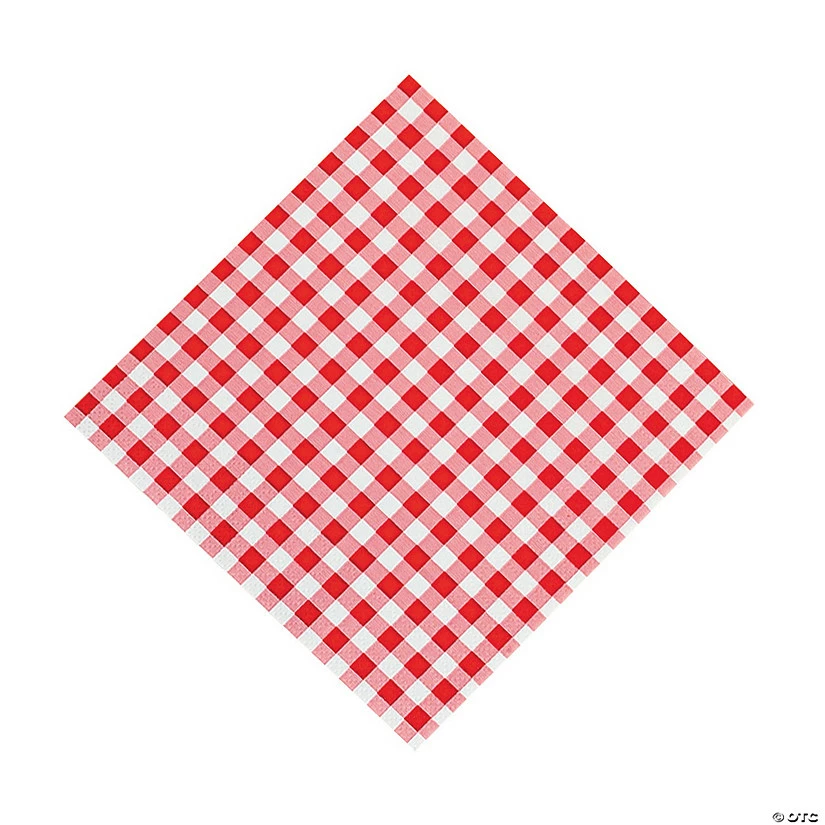 Finishing off the perfect picnic or a great summer grill out is simple with these Red Gingham Luncheon Napkins. With their simple yet classic gingham design, these napkins will be welcome at any event. Pair them up with our gingham dinner plates to create perfect place setting! Paper. (4 dozen per unit) 6 1/2″ ยฉ OTC