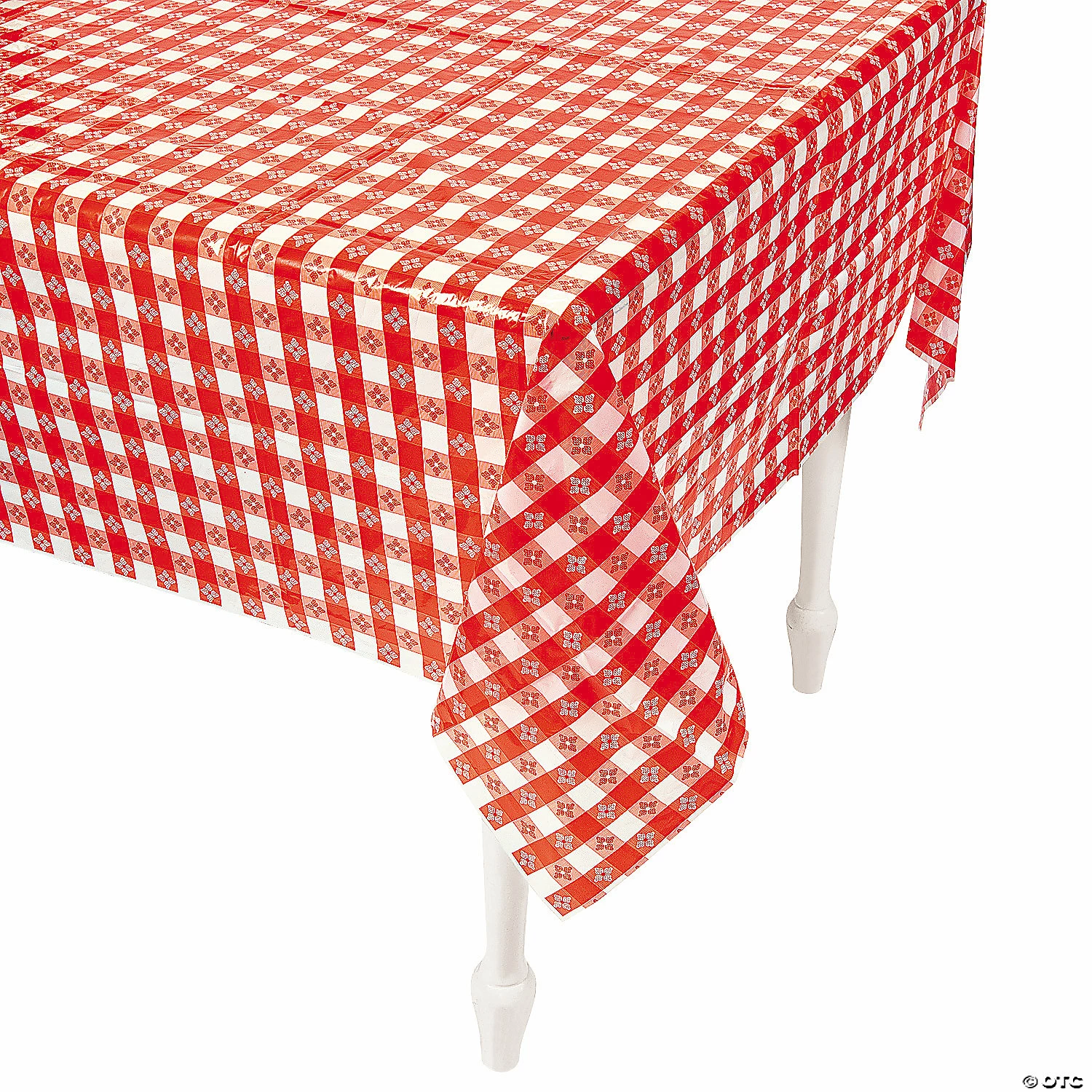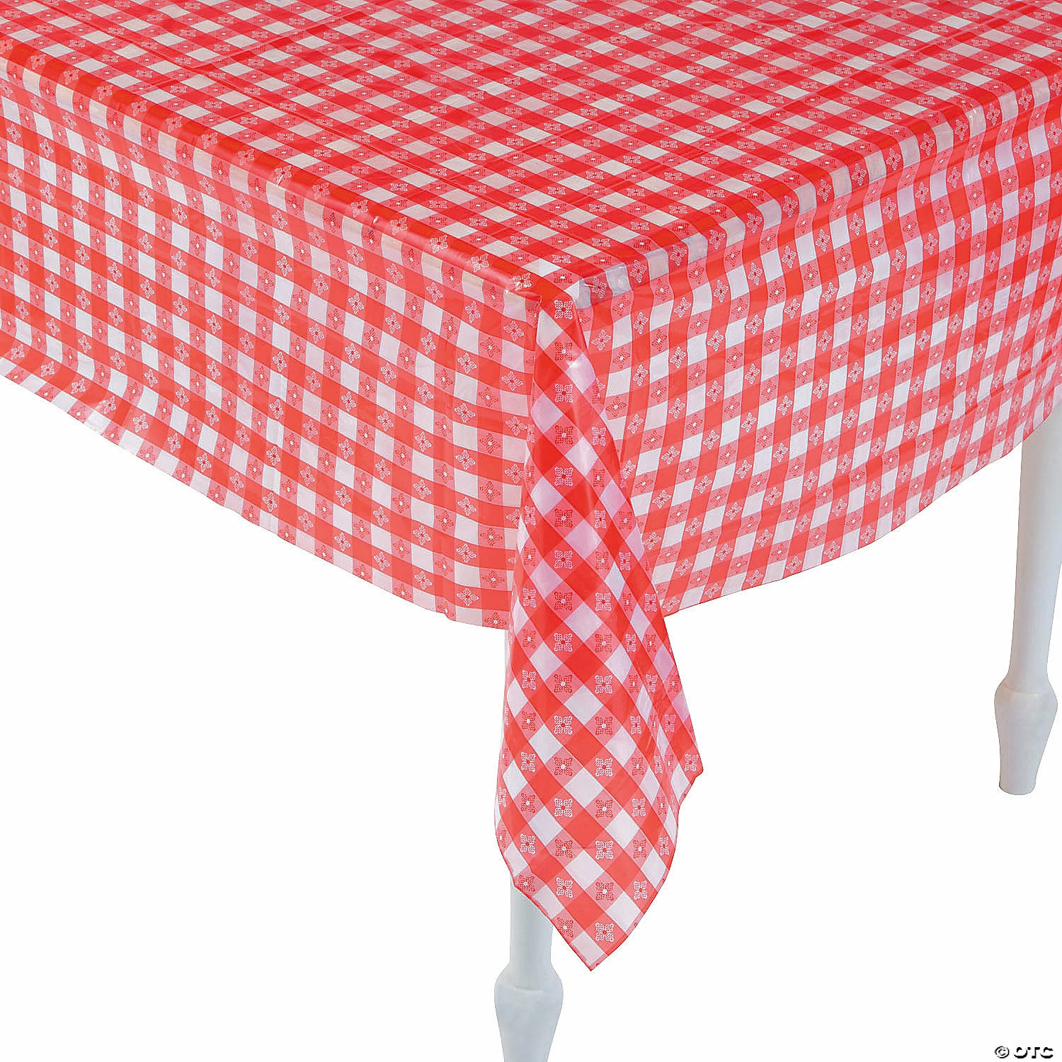 These red and white checkered tablecloths look like they just fell off the chuck wagon! Use them at a Western party to add classic authenticity to buffet tables or put them on picnic tables in the park to add to your summer celebration. With a dozen disposable tablecloths, youโll have plenty for covering a variety of tables of all sizes. โขย Plastic.โขย Thin, slightly transparent.โขย Disposable.โขย 52″ x 90″