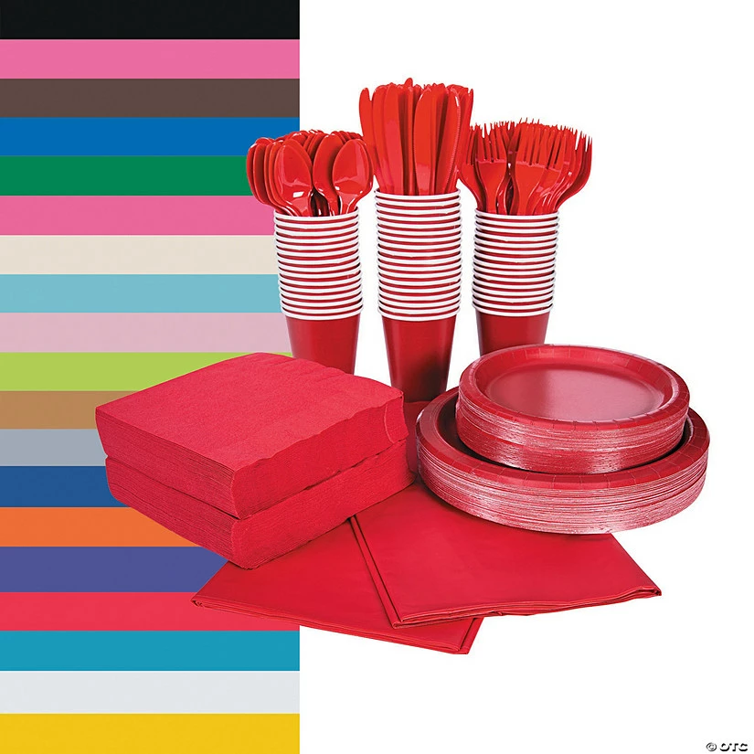 Serve up an amazing party with help from a party tableware set! You’ll get everything you need to serve 48 people, including paper plates, paper napkins, plastic cutlery, paper cups and even rectangular plastic tablecloths. With these party supplies, your party tables will definitely be set for success! (396 pcs. per unit)