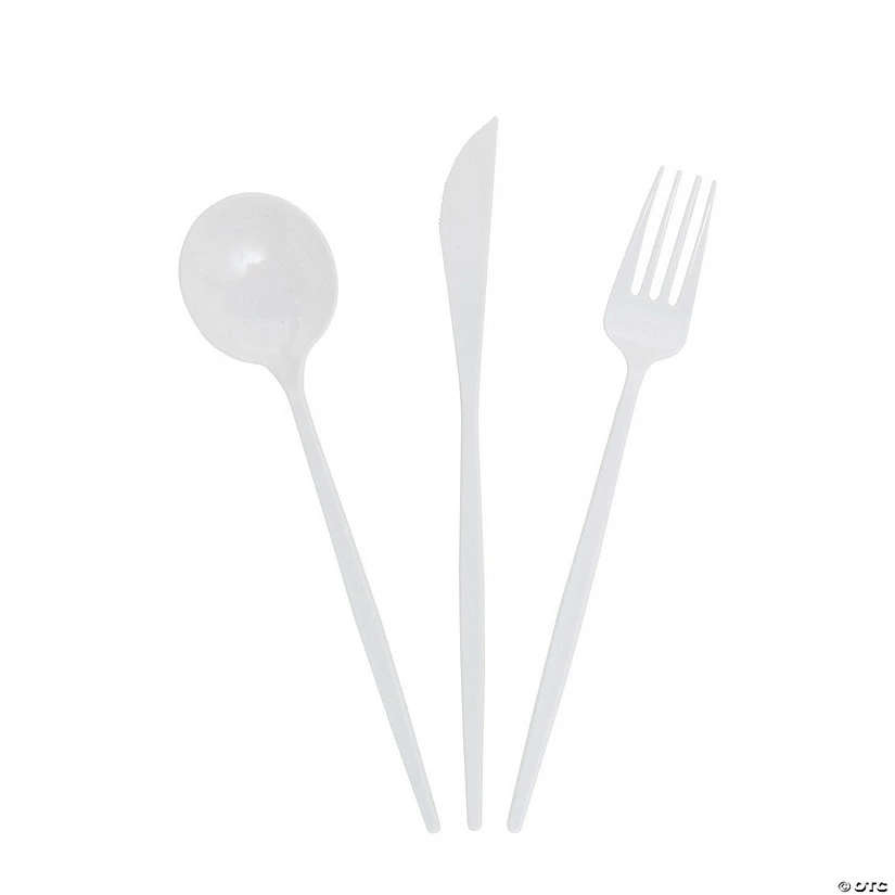 Disposable tableware can be sophisticated and chic! These plastic cutlery sets have an elegant look and can be used for formal occasions like wedding receptions, anniversary dinners, fundraisers or any other sophisticated event. These plastic cutlery sets each include a spoon, a fork and a knife, making them the perfect addition to disposable tableware for a formal event. Plastic. (24 pcs. per unit) Includes eight spoons, eight knives and eight forks. 8 3/4″ Serves 8 guests.